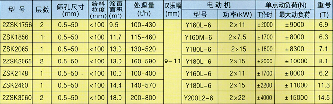 ZSK型振動(dòng)篩為直線運(yùn)動(dòng),全系列共有二十四種規(guī)格,可供選煤、選礦、發(fā)電、制糖、制鹽等工業(yè)部門,對中細(xì)粒度物料進(jìn)行干濕式篩分、脫水、脫介、脫泥。結(jié)構(gòu)先進(jìn)、堅(jiān)固耐用、振動(dòng)噪聲小。